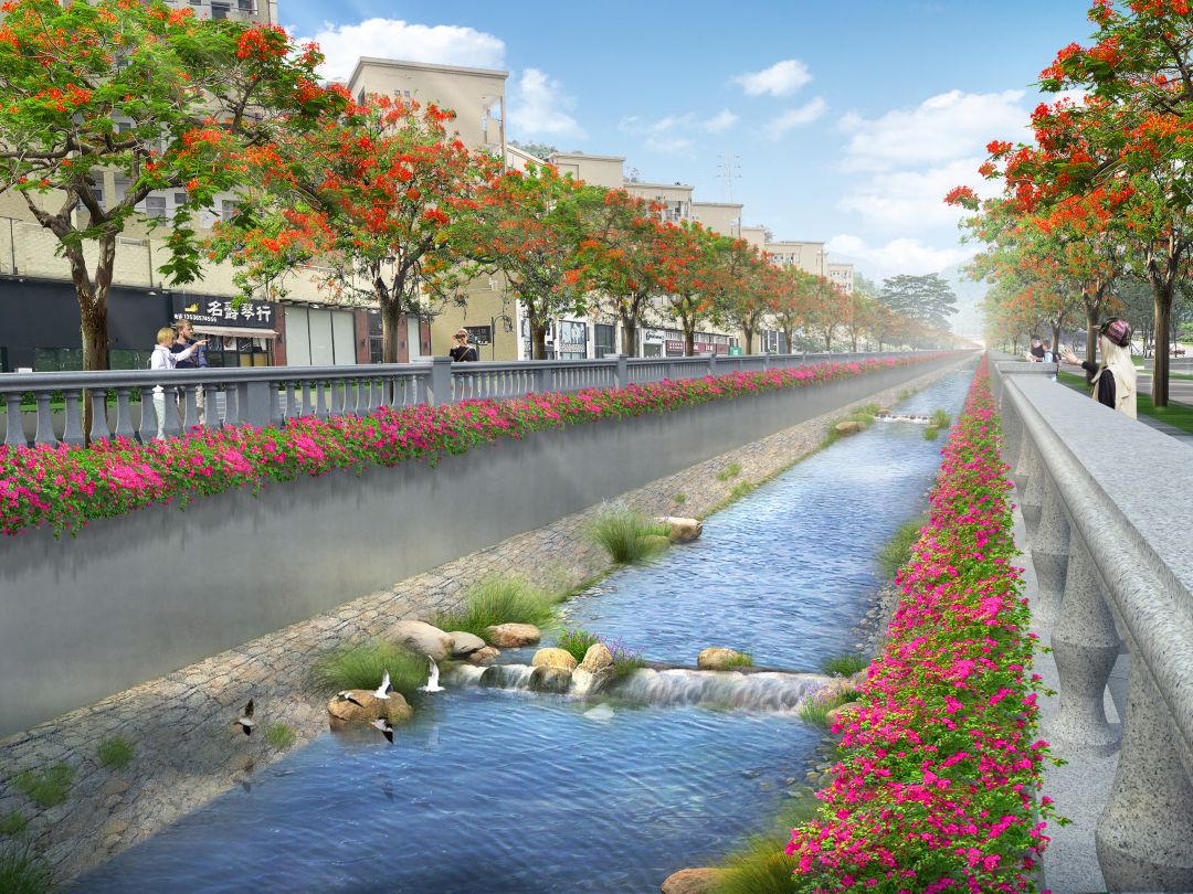 金凤排洪渠(凤凰山隧道北-南围海堤段)综合整治工程起于凤凰山隧道北出口,止于现状南围海堤,渠道全长约6.83km,包括新建桥梁2座和唐站前路(唐站南路至凯旋路)新建段,工程建设内容包括:道路工程、桥梁工程、交通工程、管线工程、景观工程、照明工程等。