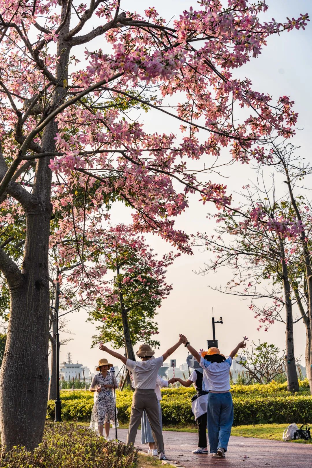 每年立冬前后,告别春夏雨季的横琴花海长廊便迎来了她一年之中最美丽的季节——美丽异木棉盛花期。绚烂的粉色花海以饱满、茂盛、茁壮的姿态展现在市民游客们面前,海岸四处洋溢着浪漫与温馨。
