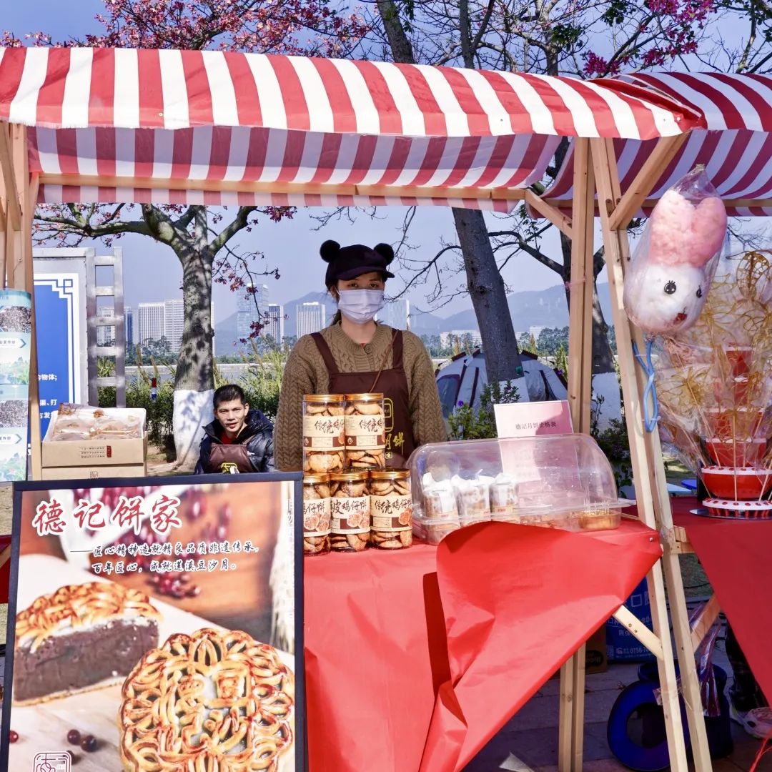 除此之外,每逢周末,一号、二号和三号驿站开展东湾墟市活动,斗门莲洲镇东湾村农产品市集走进花海,带来优质的本地产绿色农产品、特色手工糖水和农副产品、非遗点心小吃等,吸引了大批市民游客上前询问和购买。游客在享受美景、体验美食之旅的同时,亦促进了乡村振兴与满足城镇消费需求的良性循环,乡村市集在花海焕发出了新活力。