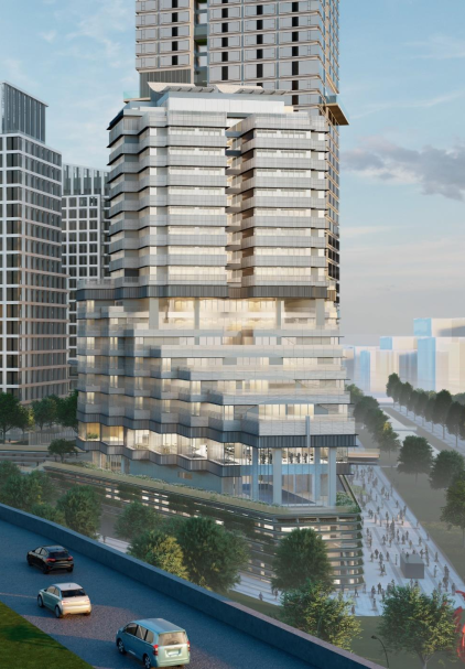 在研发办公板块,22栋建筑被精准划分为三种生命体量。180米超高层A塔以首层5.5米挑高,迎接企业总部入驻;50-100米高层B塔为成长型科技企业定制4.5米层高与VIP洗手间(带淋浴);24米独栋C塔一、二层预留可拆卸楼板,打通后层高可达10米,首层最大荷载可达1200-1500kg/㎡,满足生物医药企业的重型设备需求。