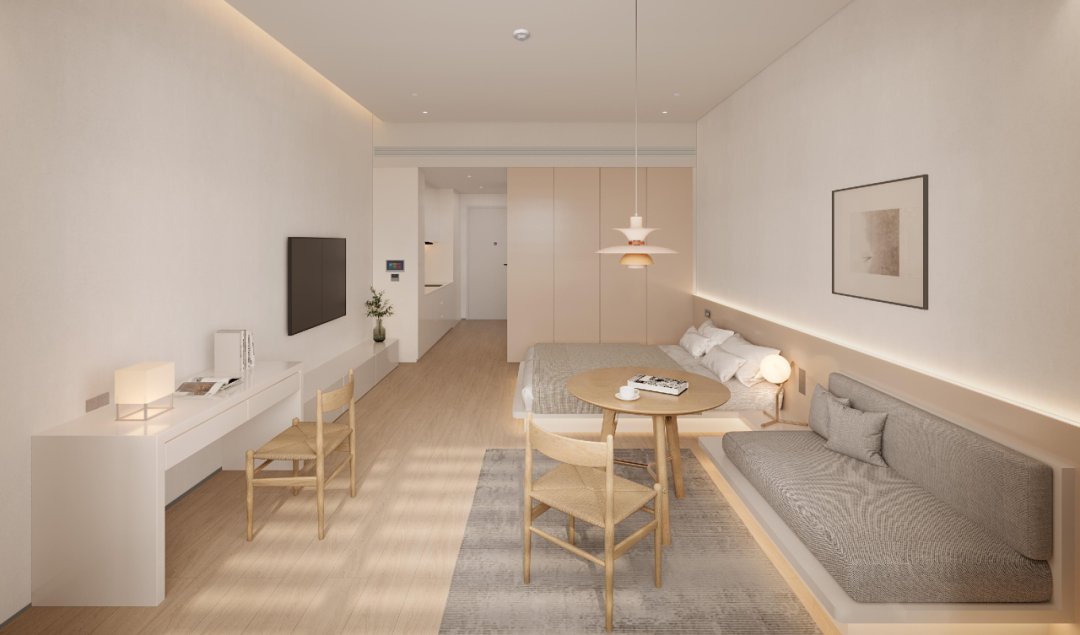 不远处的专家公寓则流淌着东方的静谧诗意。日本建筑学会前会长仙田满院士以几何哲学解构三角地块:阶梯状基座衔接城市道路,垂直塔楼上升至百米高空。138套公寓从37平方米单房到207平方米顶层豪宅,均配备泳池与会所。退台式的立面构成,使每位归家的科研精英都能在窗前遇见不同的风景——这是珠光集团对人居关怀的立体诠释。