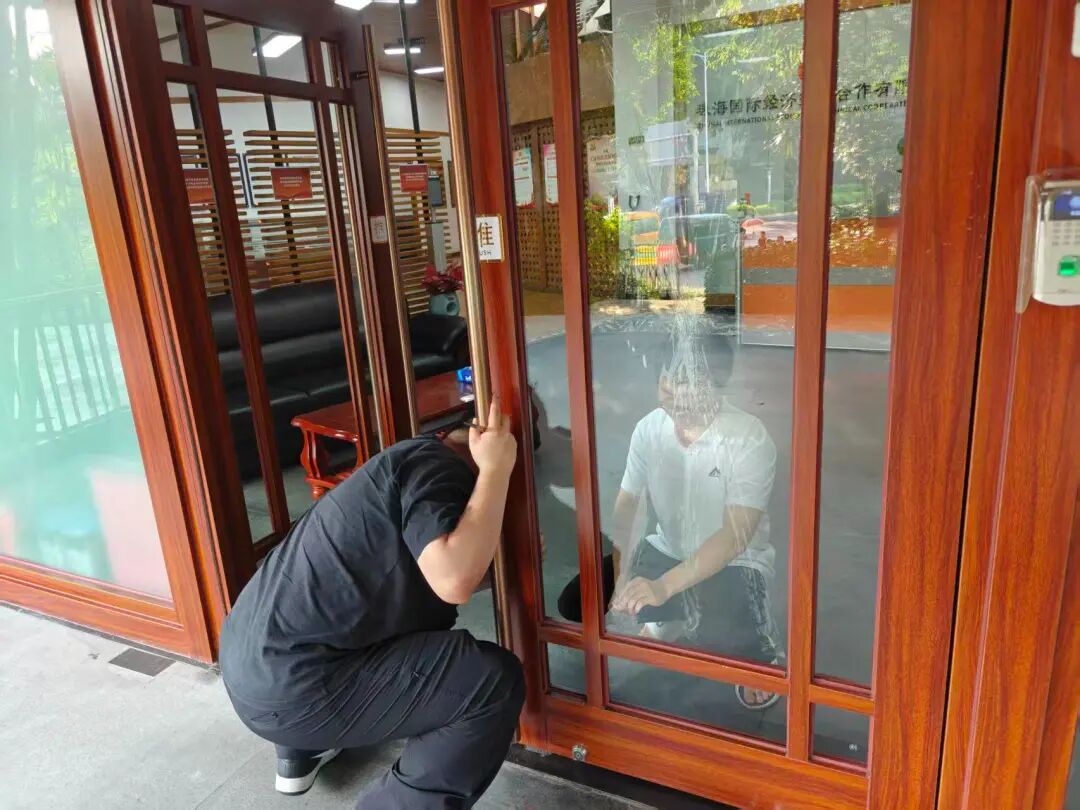 对门窗加装木方、贴米字胶带加固,检查办公设备,关闭非必要用电设备,并对办公区域的安全用电、消防安全、办公设备防护、应急管理措施等进行全方位排查与整治。