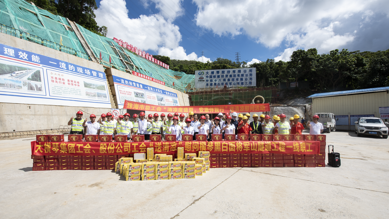 7月23日上午,横琴新区总工会副主席、大横琴集团党委书记、工会主席田伟带队赴横琴先进智能计算平台项目及横琴黑白面将军山隧道工程项目开展夏日送清凉慰问活动。